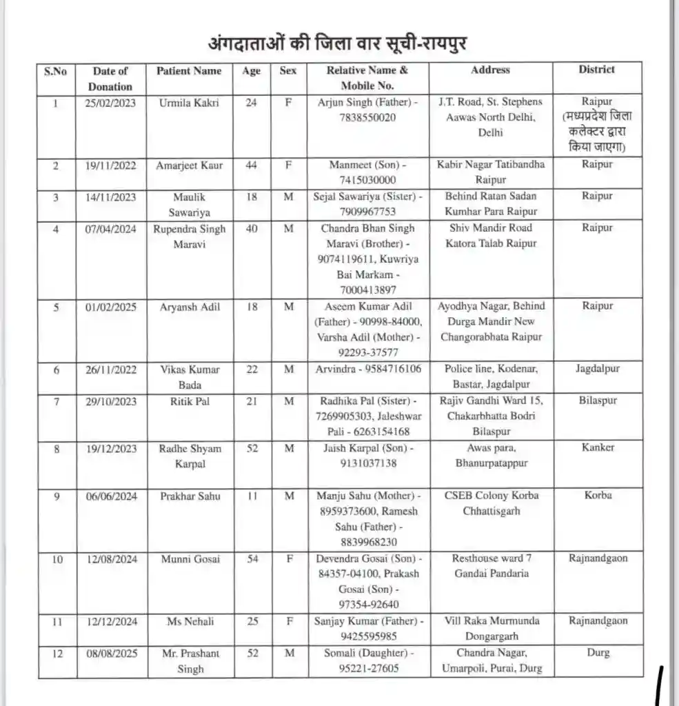 Organ Donation Honour CG: अंगदाता परिवारों को मिलेगा सम्मान, स्वतंत्रता दिवस पर होगी खास पहल, देखिये छत्तीसगढ़ में अंगदान करने वालों की लिस्ट