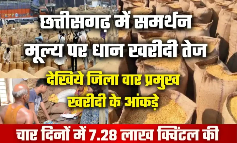 चार दिनों में 7.28 लाख क्विंटल धान की खरीदी