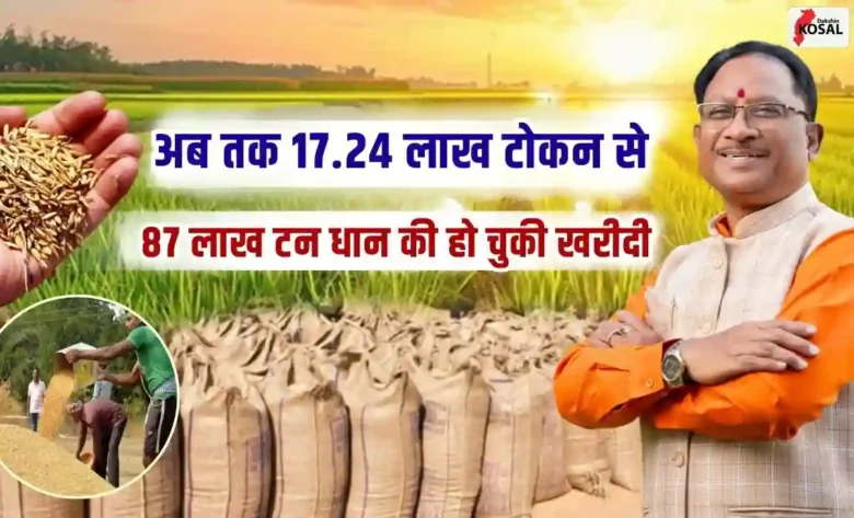 CG Dhan Kharidi: छत्तीसगढ़ में धान खरीदी जारी, अब तक 17.24 लाख टोकन से 87 लाख टन धान की खरीदी