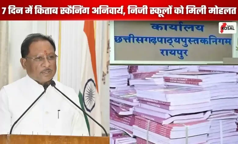 रायपुर: छत्तीसगढ़ के सभी निजी स्कूलों में प्राइवेट पब्लिशर्स की किताबों के उपयोग पर पूर्ण प्रतिबंध लगा दिया है। इसके बाद पाठ्यपुस्तक निगम ने निजी स्कूलों को मुफ्त पाठ्यपुस्तक वितरण करने का शेड्यूल जारी किया गया। मुख्यमंत्री विष्णु देव साय ने छत्तीसगढ़ में स्कूलों को समय पर पाठ्यपुस्तक उपलब्ध कराने के उद्देश्य से एक अहम फैसला दिया है तकनीकी कारणों से हुई देरी को ध्यान में रखते हुए मुख्यमंत्री ने सभी निजी स्कूलों को बारकोड स्कैनिंग की प्रक्रिया पूरी करने के लिए 7 दिनों की अंतिम मोहलत दी है। निगम ने डिपो में ही बैठकर किताबें स्कैन करने के निर्णय में सुधार करते हुए स्कूलों को किताबें उठाने के पश्चात अपने स्कूल में ही स्कैन करने की छूट दे दी है। साथ ही यह भी कहा है कि स्कूलों को पुस्तक ले जाने के बाद 7 दिन में पुस्तकों को स्कैन कर रिपोर्ट भी देनी होगी।