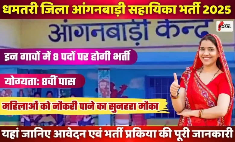 Anganwadi Sahayika Bharti 2025: धमतरी जिले की महिलाओं के लिए खुशखबरी है। एकीकृत बाल विकास परियोजना (ICDS) धमतरी ग्रामीण के तहत कई आंगनबाड़ी केंद्रों में सहायिका पद पर भर्ती निकली है। अगर आप कम से कम 8वीं पास हैं और उसी गांव की निवासी हैं, तो ये मौका आपके लिए एकदम फिट है।