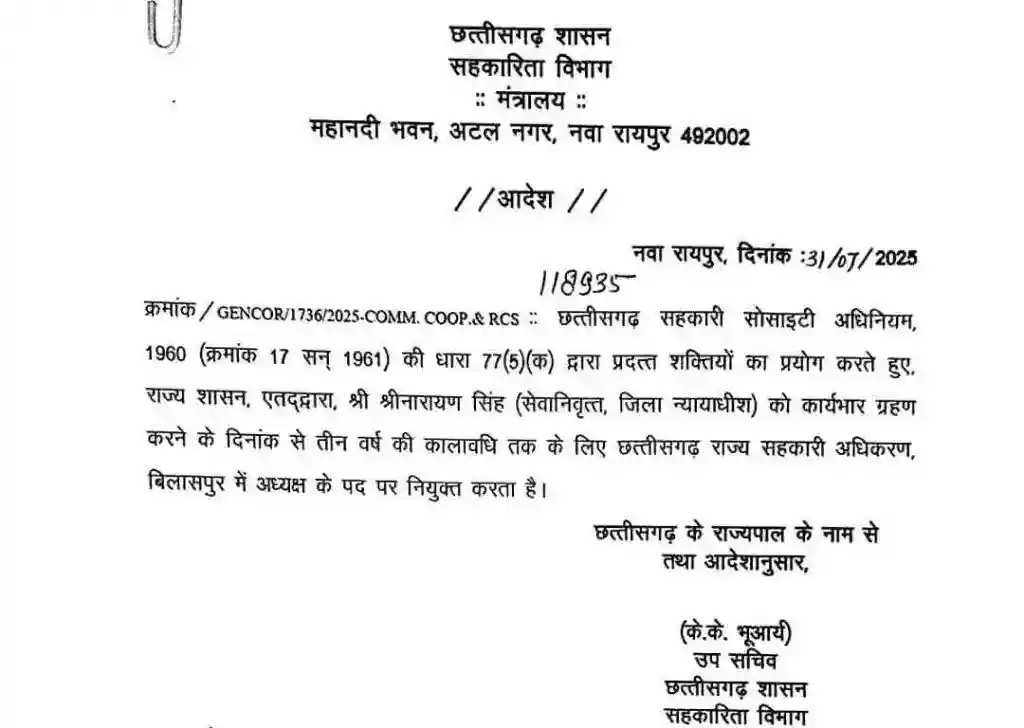 रिटायर्ड IAS बिपिन मांझी बने सहकारी निर्वाचन आयुक्त, श्रीनारायण सिंह को मिला अधिकरण बिलासपुर अध्यक्ष का दायित्व, आदेश जारी