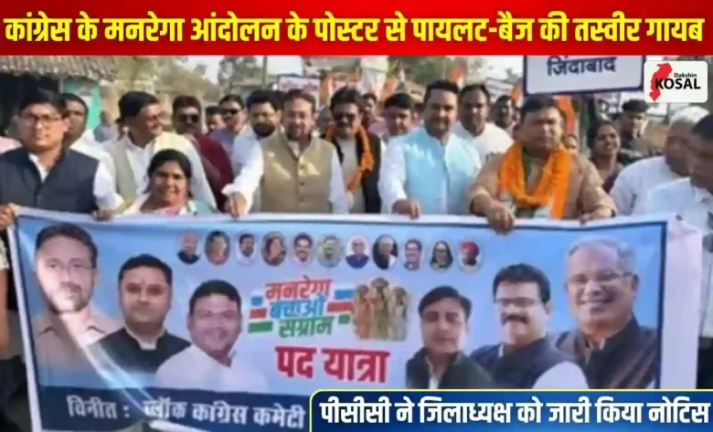 छत्तीसगढ़ कांग्रेस के भीतर की गुटबाजी एक बार फिर पोस्टर के जरिए सामने आ गई है। बिलासपुर जिले के कोटा ब्लॉक में आयोजित ‘मनरेगा बचाव महासंग्राम’ पदयात्रा के दौरान लगाए गए बैनरों ने सियासी गलियारों में हलचल पैदा कर दी है। इन पोस्टरों में पार्टी के प्रदेश प्रभारी सचिन पायलट और पीसीसी अध्यक्ष दीपक बैज की तस्वीरें नदारद थीं। पार्टी के दो सबसे बड़े चेहरों की फोटो गायब होने को अनुशासनहीनता माना जा रहा है।