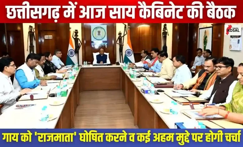 रायपुर: Sai Cabinet Meeting: छत्तीसगढ़ की राजनीति आज एक ऐतिहासिक फैसला ले सकती है। मुख्यमंत्री विष्णुदेव साय की अध्यक्षता में नवा रायपुर स्थित मंत्रालय (महानदी भवन) में आज सुबह 11:30 बजे राज्य मंत्रिपरिषद की अहम बैठक होगी। इस बैठक में कई महत्वपूर्ण मुद्दों पर मुहर लगने की संभावना है, लेकिन सबसे प्रमुख एजेंडा गाय को ‘राजमाता’ (Rajmata) का दर्जा देने का प्रस्ताव माना जा रहा है।