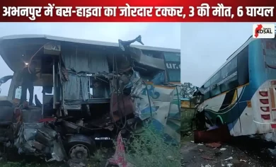 Abhanpur Road Accident: अभनपुर में ओवरटेक के दौरान बस और हाईवे की टक्कर 3 की दर्दनाक मौत 6 घायल, बस हुआ चकनाचूर