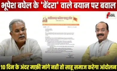 VIDEO: भूपेश बघेल के ‘बेंदरा’ वाले बयान पर बवाल: डिप्टी सीएम अरुण साव के अपमान से भड़का साहू समाज, अल्टीमेटम दे कहा- 10 दिन में माफी मांगें