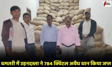 धमतरी में अवैध धान भंडारण और परिवहन पर कड़ी कार्रवाई, उड़नदस्ता दल ने 17 प्रकरण दर्ज कर 784 क्विंटल धान किया जप्त