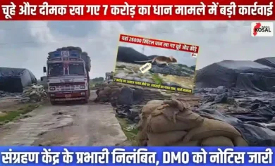 7 करोड़ का धान चूहों और दीमक के खा जाने की दलील देने वाले संग्रहण केंद्र प्रभारी को प्रशासन ने थमाया निलंबन का आदेश, DMO को जारी किया गया नोटिस