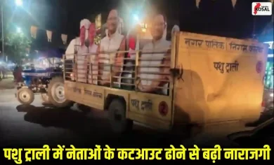 पशु ट्राली में नेताओं के कटआउट ढोने से बढ़ा विवाद, तीन अफसरों को नोटिस जारी
