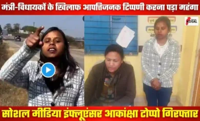 VIDEO: सोशल मीडिया इंफ्लुएंसर आकांक्षा टोप्पो गिरफ्तार: मंत्री लक्ष्मी राजवाड़े और विधायक रामकुमार टोप्पो पर अभद्र टिप्पणी करना पड़ा भारी