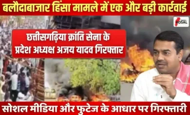 बलौदाबाजार हिंसा कांड में पुलिस का बड़ा एक्शन: छत्तीसगढ़िया क्रांति सेना के प्रदेश अध्यक्ष अजय यादव गिरफ्तार, जानिए क्या हैं आरोप…