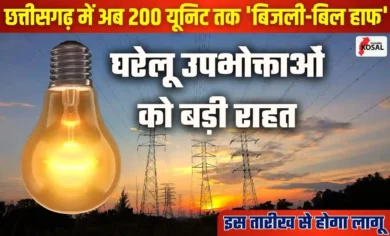 छत्तीसगढ़ सरकार ने घरेलू उपभोक्ताओं को बड़ी राहत देते हुए ‘बिजली-बिल हाफ’ योजना की सीमा को 100 यूनिट से बढ़ाकर…