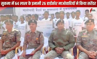 Naxali Surrender : सुकमा में नक्सलवाद को तगड़ा झटका: 7 महिलाओं समेत 26 हार्डकोर माओवादियों ने डाला हथियार, सरेंडर करने वालों पर था 64 लाख का इनाम