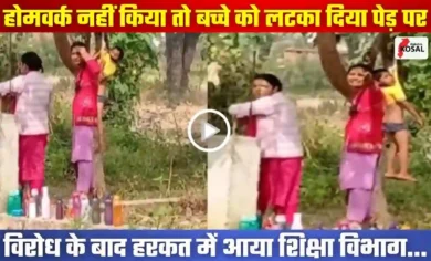 VIDEO: होमवर्क न करने की तालिबानी सजा: होमवर्क नहीं किया तो शिक्षिकाओं ने बच्चे को पेड़ से लटकाया