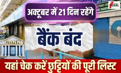Bank Holiday: अक्टूबर का महीना त्योहारों से भरा हुआ है, जिसकी वजह से इस बार पूरे महीने में 21 दिन…