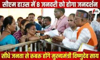 छत्तीसगढ़ के मुख्यमंत्री विष्णुदेव साय आगामी 8 जनवरी को रायपुर स्थित अपने सरकारी निवास पर ‘जनदर्शन’ कार्यक्रम का आयोजन करने…