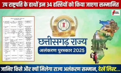 छत्तीसगढ़ राज्य अलंकरण पुरस्कार 2025: इन 34 विभूतियों का होगा सम्मान, सूची जारी