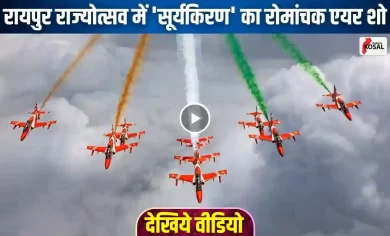 Raipur Air Show VIDEO: छत्तीसगढ़ राज्योत्सव में ‘सूर्यकिरण’ का रोमांचक एयर शो: नवा रायपुर के आसमान में दिखा ‘तिरंगा’ और ‘दिल’ का अद्भुत नजारा