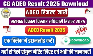 CG Vyapam ADEO Result 2025 Out: छत्तीसगढ़ व्यापम (CG Vyapam) ने सहायक विकास विस्तार अधिकारी (ADEO) परीक्षा का रिजल्ट जारी…