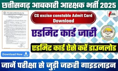 CG Vyapam Abkari Aarakshak Admit Card 2025: छत्तीसगढ़ व्यावसायिक परीक्षा मंडल (CG Vyapam) ने आबकारी आरक्षक (Abkari Aarakshak) भर्ती परीक्षा…