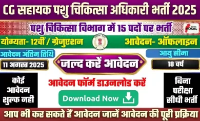 CG Bastar Assistant Veterinary Officer Vacancy 2025: छत्तीसगढ़ बस्तर में सहायक पशु चिकित्सा अधिकारी के 15 पदों पर सीधी भर्ती, ऐसे करें आवेदन