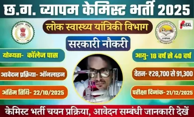 CG Vyapam Chemist Recruitment 2025: छ.ग. व्यापम लोक स्वास्थ्य यांत्रिकी विभाग में केमिस्ट के पदों पर बंपर भर्ती