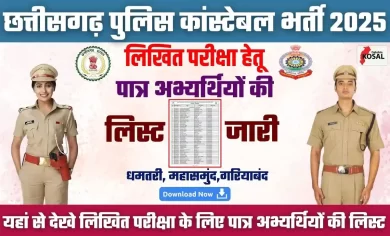CG Police Constable List for Written Exam 2025: छत्तीसगढ़ पुलिस कांस्टेबल भर्ती 2025: लिखित परीक्षा के लिए पात्र अभ्यर्थियों की सूची जारी