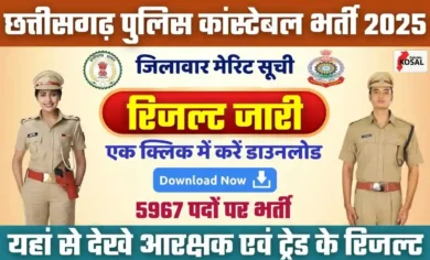 CG Police Constable Result 2025: छत्तीसगढ़ जिला पुलिस बल में आरक्षक (कांस्टेबल) भर्ती के कुल 5967 पदों हेतु आयोजित भर्ती…
