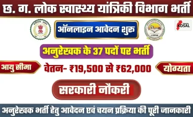 CG Vyapam Tracer Recruitment 2025: छत्तीसगढ़ लोक स्वास्थ्य यांत्रिकी विभाग में अनुरेखक के 37 पदों पर सीधी भर्ती, ऑनलाइन आवेदन शुरू