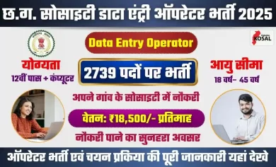 CG Mandi Board Data Entry Operator Bharti 2025: छ.ग. कृषि उपार्जन केंद्रों (सोसाइटी) में डाटा एंट्री ऑपरेटर के 2739 पदों पर भर्ती