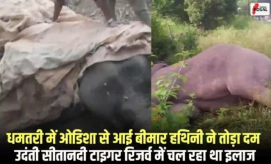 Dhamtari News:छत्तीसगढ़ के उदंती सीतानदी टाइगर रिजर्व में पिछले एक हफ्ते से जीवन और मौत के बीच झूल रही हथिनी…