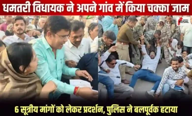 धमतरी में सड़क पर उतरे विधायक: ओंकार साहू ने अपने ही गांव में किया चक्काजाम, पुलिस से हुई तीखी झड़प