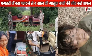 धमतरी में भीषण सड़क हादसा: तेज रफ्तार बस पलटी, 4 साल की बच्ची की मौत, कई यात्री घायल