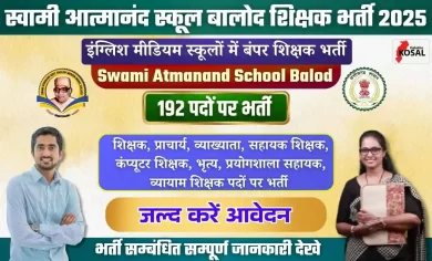 Balod Atmanand School Teacher Bharti 2025: स्वामी आत्मानंद शासकीय उत्कृष्ट अंग्रेजी माध्यम स्कूल बालोद में 192 पदों पर भर्ती, आवेदन शुरू