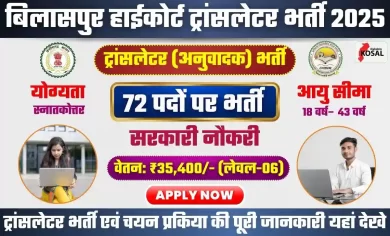 छ.ग. बिलासपुर हाईकोर्ट में ट्रांसलेटर के 72 पदों पर बंपर भर्ती: CG High Court Bilaspur Translator Vacancy 2025