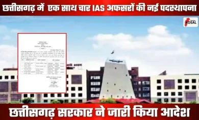 CG IAS Transfer List: छत्तीसगढ़ में चार IAS अधिकारियों की नवीन पदस्थापना, देखें आदेश