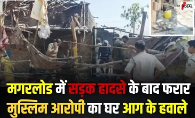 मगरलोड: सड़क हादसे के बाद फरार मुस्लिम आरोपी का घर आग के हवाले