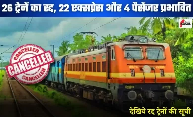 Train Cancelled: रेल यात्रियों की फिर बढ़ेगी मुश्किलें, 22 एक्सप्रेस व 4 पैसेंजर ट्रेनें हुईं रद्द, कुछ के मार्ग बदले गए, देखें लिस्ट