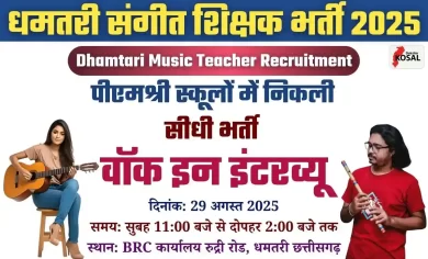 Dhamtari Music Teacher Recruitment: धमतरी में पीएमश्री स्कूलों के लिए संगीत प्रशिक्षकों की भर्ती, वॉक इन इंटरव्यू 29 अगस्त को