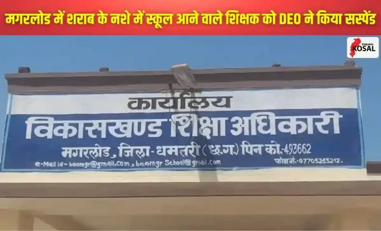 मगरलोड: Teacher Suspended: शराब पीकर स्कूल पहुंचने और महिला कर्मियों से दुर्व्यवहार करने वाले शिक्षक को जिला शिक्षा अधिकारी (DEO) ने तत्काल प्रभाव से निलंबित कर दिया है।
