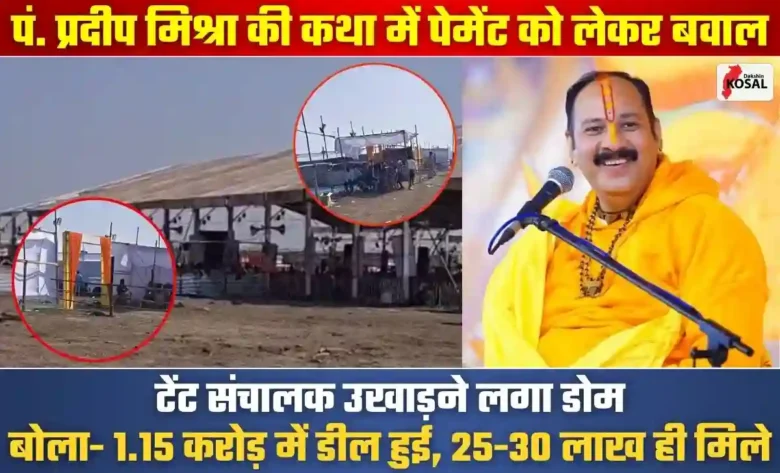 Durg News: दुर्ग जिले के नगपुरा में चल रही पं. प्रदीप मिश्रा की शिव महापुराण कथा में उस वक्त हड़कंप मच गया जब टेंट संचालक ने अचानक पंडाल उखाड़ना शुरू कर दिया। आयोजन समिति और कर्मा टेंट हाउस के बीच पैसों के लेन-देन को लेकर भारी विवाद हो गया। टेंट संचालक नरेंद्र कुमार साहू का दावा है कि उनके साथ 1.15 करोड़ रुपये में काम तय हुआ था, लेकिन समिति ने अब तक केवल 25-30 लाख रुपये ही दिए हैं। बकाया राशि न मिलने से नाराज संचालक ने शनिवार सुबह डोम के हिस्से को खोलना शुरू कर दिया, जिससे वहां मौजूद हजारों श्रद्धालुओं के बीच डर और अफरा-तफरी का माहौल बन गया।