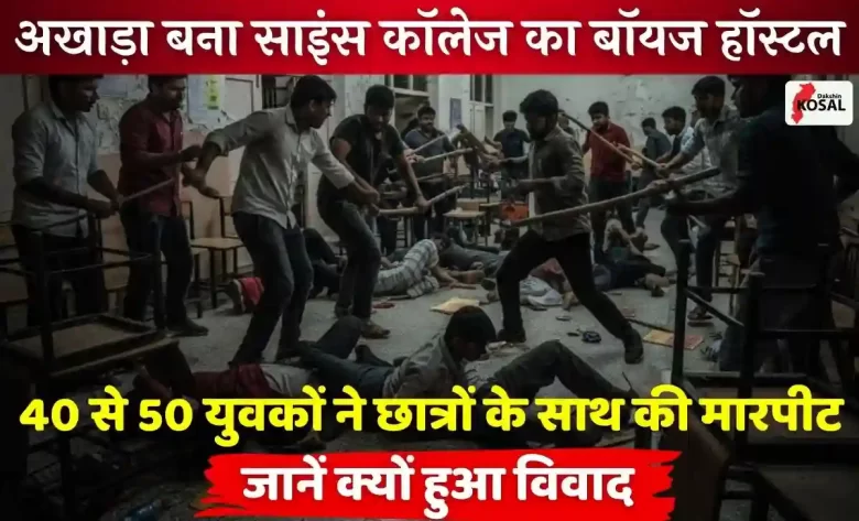 रायपुर: Raipur Science College Hostel: छत्तीसगढ़ की राजधानी रायपुर में देर रात साइंस कॉलेज स्थित बॉयज हॉस्टल में जमकर हंगामा और मारपीट हुई। बताया जा रहा है कि 40 से 50 अज्ञात युवकों ने हॉस्टल में जबरन घुसकर छात्रों के साथ मारपीट की, जिससे कई छात्र घायल हो गए। यह विवाद नशे में धुत बाहरी युवकों को हॉस्टल परिसर में आपत्तिजनक हरकत करने से मना करने पर शुरू हुआ।