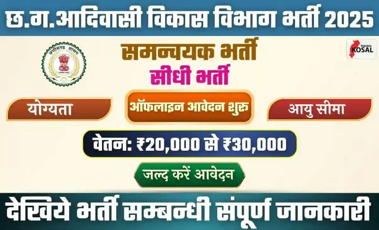 Tribal Department Bijapur Vacancy 2025: कलेक्टर कार्यालय (आदिवासी विकास) बीजापुर द्वारा संविदा आधार पर विभिन्न पदों पर भर्ती के लिए आवेदन आमंत्रित किए गए हैं। यह भर्ती जिला स्तरीय समन्वयक (District Level Coordinator) और एमआईएस सहायक (MIS Assistant) के पदों पर की जाएगी। इच्छुक और योग्य उम्मीदवार अंतिम तिथि से पहले आवेदन कर सकते हैं।