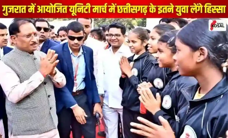 छत्तीसगढ़ के मुख्यमंत्री विष्णुदेव साय ने सरदार वल्लभभाई पटेल की 150वीं जयंती के अवसर पर आयोजित होने वाले ‘यूनिटी मार्च’ (राष्ट्रीय पदयात्रा) में भाग लेने जा रहे राज्य के युवाओं के दल को रवाना किया। रायपुर स्थित छत्तीसगढ़ राज्य युवा आयोग कार्यालय से मुख्यमंत्री साय ने 68 छत्तीसगढ़ी युवाओं के दल को हरी झंडी दिखाकर गुजरात के लिए रवाना किया। यह युवा पदयात्रा सरदार पटेल की कर्मभूमि करमसद से केवड़िया तक आयोजित होगी और पूरे भारत में एकता और अखंडता का संदेश देगी।