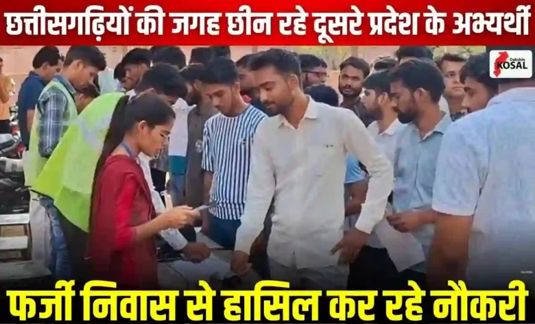 छत्तीसगढ़ में बेरोजगारी से जूझ रहे स्थानीय युवाओं के लिए एक नई मुसीबत खड़ी हो गई है। सरकारी नौकरियों में प्रदेश के युवाओं के लिए आरक्षित कोटे पर अब दूसरे राज्यों के अभ्यर्थी फर्जी तरीके से कब्जा कर रहे हैं। उत्तर प्रदेश, बिहार और आंध्र प्रदेश जैसे राज्यों से आने वाले युवा छत्तीसगढ़ का फर्जी निवास प्रमाण पत्र बनवाकर यहां के कोटे की केंद्र सरकार की नौकरियां हासिल कर रहे हैं। इस गंभीर जालसाजी के खिलाफ अब आक्रोश बढ़ने लगा है और राजनांदगांव जिले में एसएससी-जीडी (SSC-GD) की परीक्षा देने वाले स्थानीय अभ्यर्थियों ने प्रशासन से इसकी लिखित शिकायत की है।